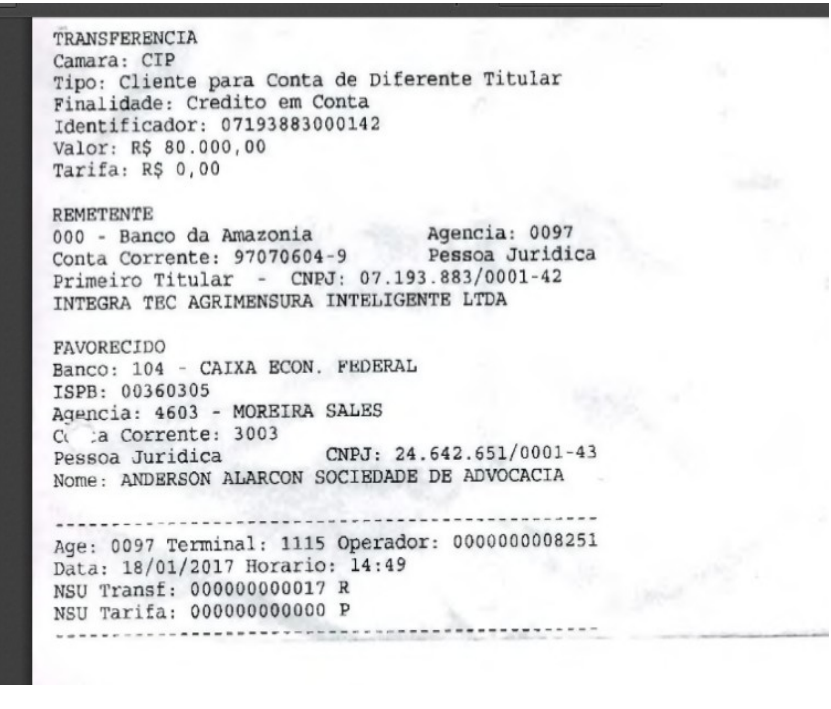 Segundo o Ministério Público, o escritório teria recebido R$ 80.000,00 provenientes de recursos públicos municipais, transferidos após pedido de estorno de pagamento realizado no âmbito de contrato de regularização fundiária.